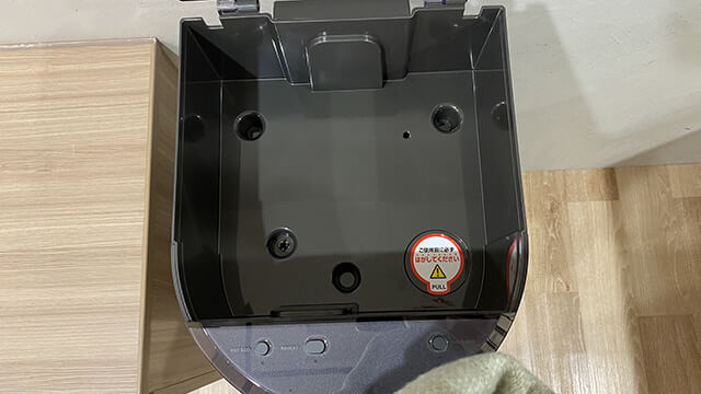 貯水タンクには5.7Lの補充が可能です。取り外しができるので、ピッチャーでの補充はもちろん、水道から直接補充したあとにセットすることも可能です。