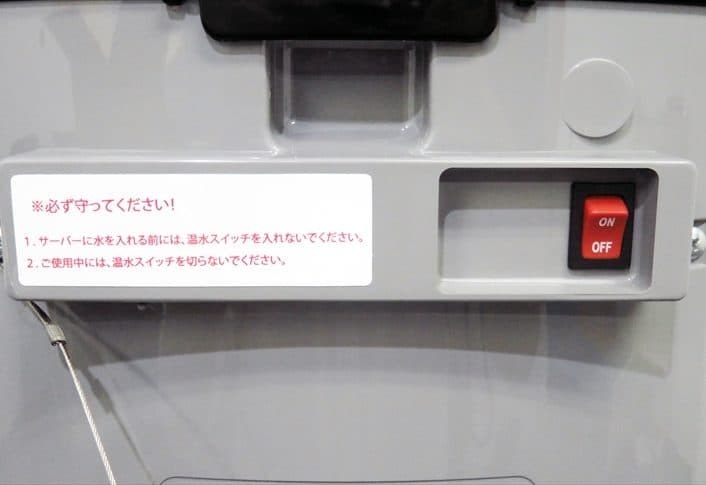 給水コック自体にも2段階式のチャイルドロックがついていて、ボタンを押しながらレバーを押さなくてはなりません。ご家族で使うことに非常に配慮されたウォーターサーバーだと思います。